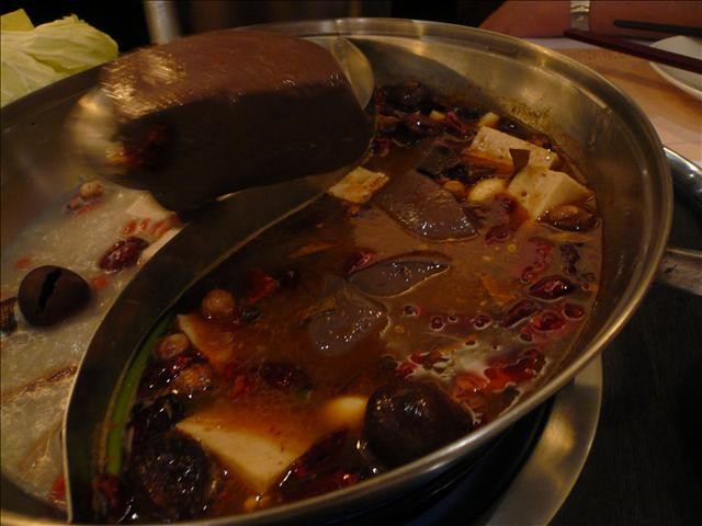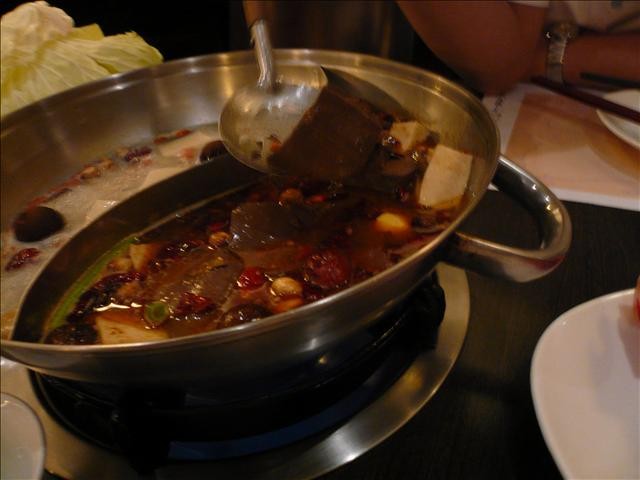 辣味鍋鍋底的辣椒、辣油等,是經過五小時以上的炒製後才加入湯頭中,