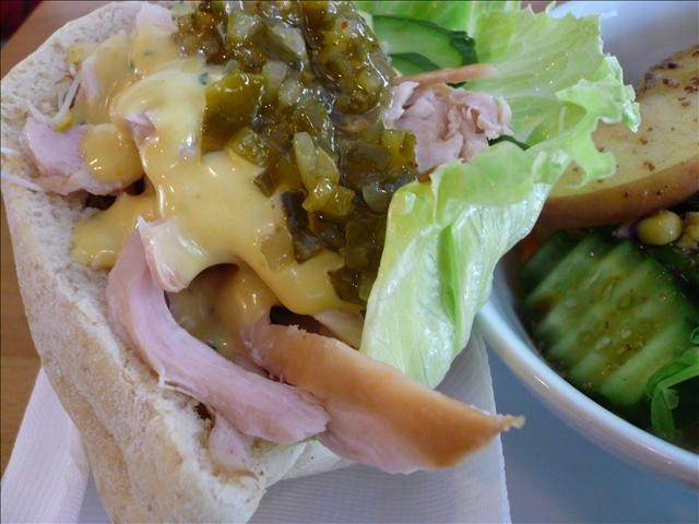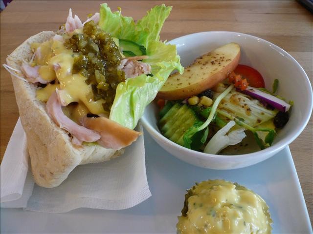 點了一份日光朝時118元 口袋麵包內餡是野菜燻雞