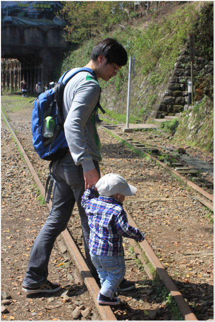 不搭火車,可以選擇漫步在鐵軌上,只是有小石子對小人而言有點不方便,偏偏小威很喜歡在這行走.........