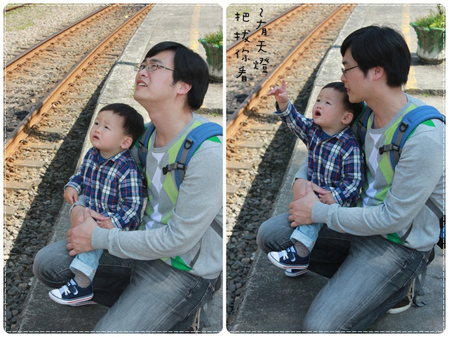 小威也好奇地行注目禮,目不轉睛看者天燈升上空中,或許他正在思考~為什麼它可以飛起來ㄋㄟ??