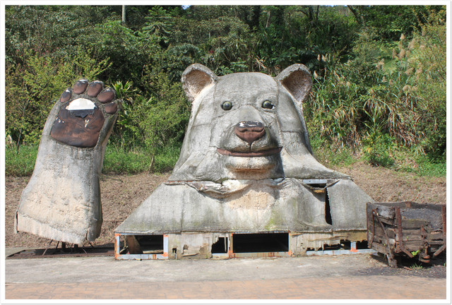 車站再往上走,小心有熊出沒~不是活生生的熊啦,是一座大型的創作品,供旅客拍照留念,還好小威對它不會感到恐懼!!
