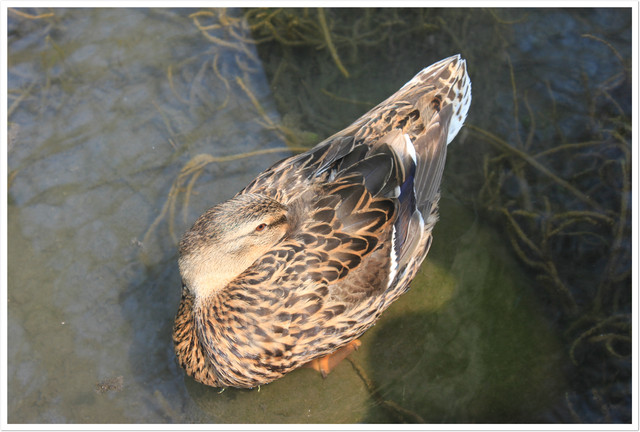 原來是鴨鴨正在休息,全身瑟縮在一起,小威還是第一次看見,好奇地目不轉睛,直視了一回^^