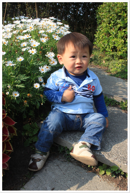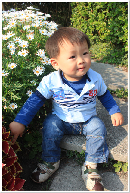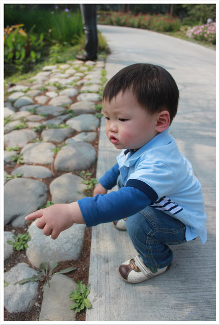 小威喜歡摸摸小草和小花,但是卻有點膽小,直呼他~怕怕,真是有勇無膽ㄚ........