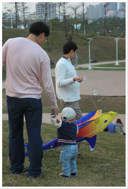 當然放風箏或吹泡泡也是不錯的選擇,鯊魚造型的風箏引起小威的注意,還想向前摸一把