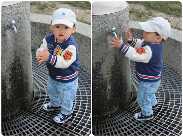 玩到手髒了,自己還想要開水龍頭洗洗手,其實玩水的程分居高,小威似乎對水有者莫名的愛戀~~XDDDDD