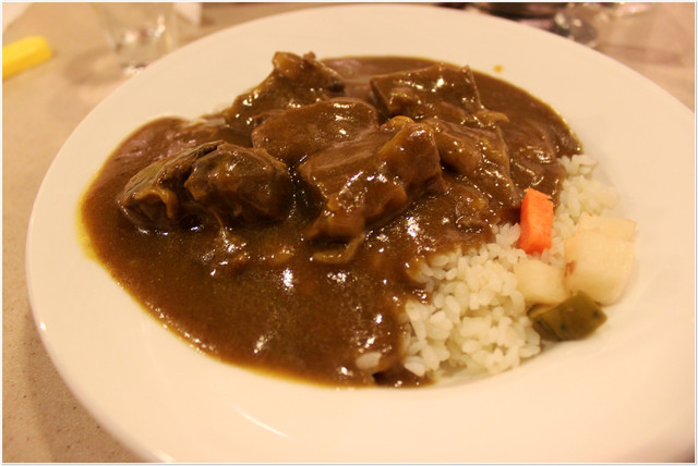 燉煮軟嫩的牛肉,搭配濃郁的咖哩,味道鮮甜,香氣在嘴裡蔓延開來,細細品嚐它的好味道