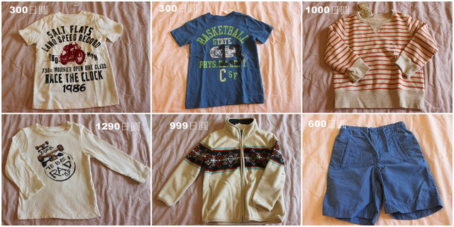 小威的衣服也是買有打折的便宜貨(GAP、UNIQLO、無印良品),大概是千元日幣上下,超過台幣5百我就會考慮了