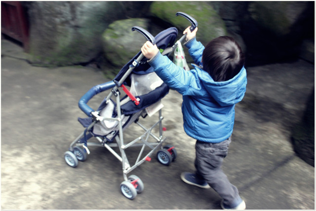 看完之後,卻不願坐推車了,執意要自己推推車,我也不可以幫忙推,固執難溝通,也就是難搞啦![]()