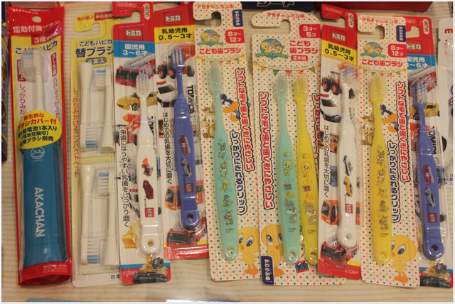 為了讓他對刷牙可以有一點點的好感,幾乎能派上用場的給西都準備了