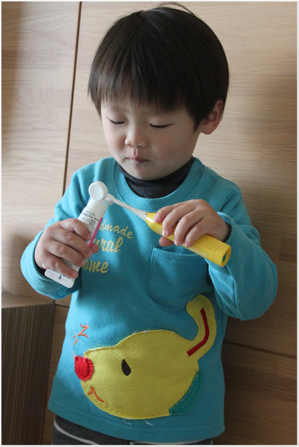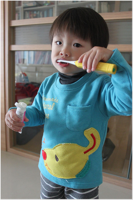 還是很勉強接受刷牙,個性倔強又超愛哭,到現在還是不敢帶他去看牙醫塗氟,拖到今日還是遲遲未行動>_
