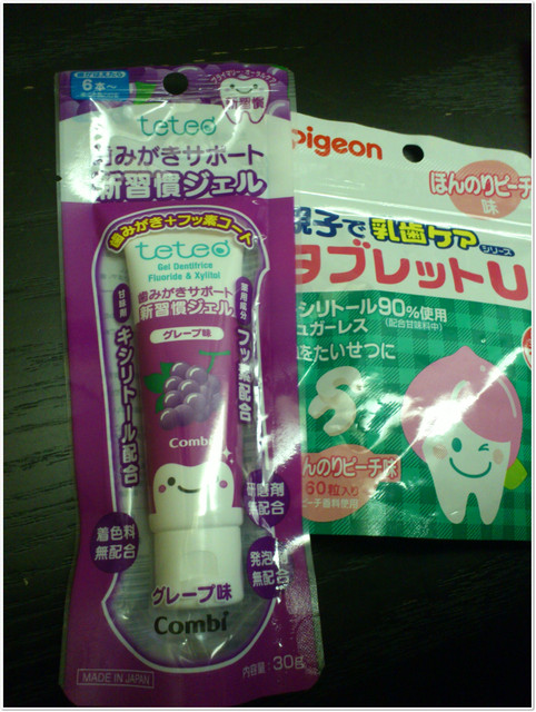 刷牙不確實,只好平日多保養,買了潔牙糖(combi、貝親)防護,希望有點成效