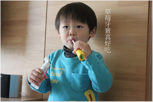 可見他是為了草莓而刷牙,不過他願意張開嘴巴讓我刷,這牙膏還是值得買