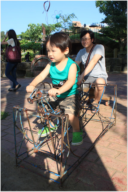 就這樣到處走走看看,可以騎乘的小玩意,小威都一一嘗試過,搖搖馬對他而言,還是存在者恐懼