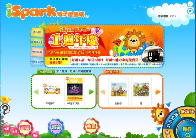 iSpark電子童書城只要加入會員,可以免費閱讀7天,書籍種類繁多,可以依孩子的需求或喜好來選擇