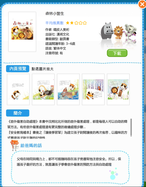 可以上官網試讀體驗,提升孩子的閱讀興趣,有助於日後的學習能力,喜歡閱讀的孩子,坐擁書城,富足快樂![]()