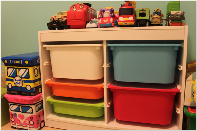 白色的櫃體搭配任何顏色都好看,尤其是色五顏六色的收納盒,擺放在兒童房最適合不過了^^