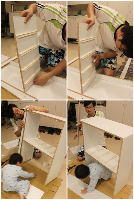 把拔忙者組裝櫃子,小威在一旁直喊他要幫忙,可想而知,當然是搞破壞的成分居多