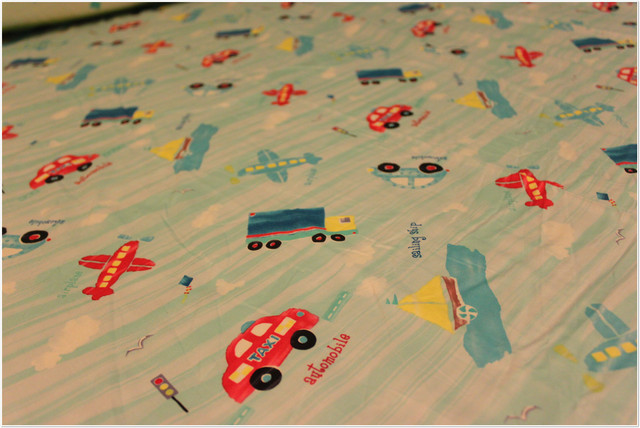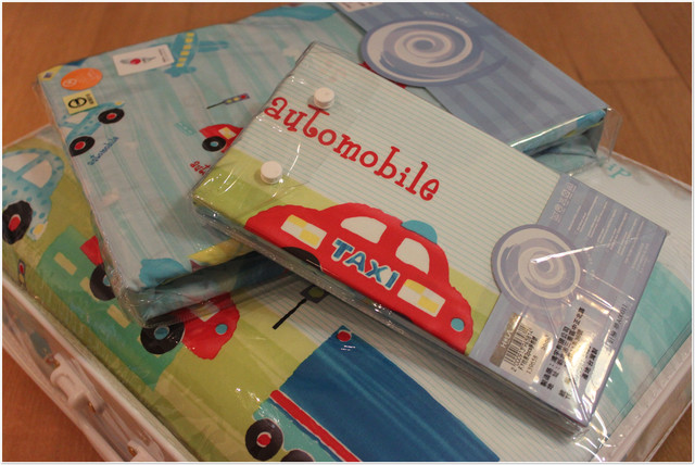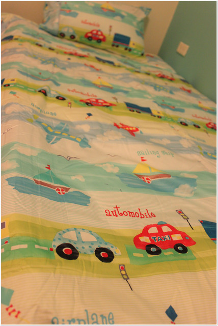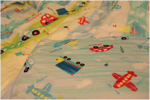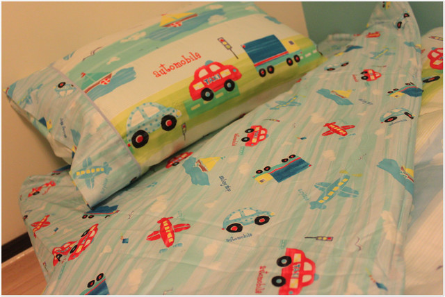 床包是小圖案設計,有車車、飛機和船,自由自在翱翔於天際或行駛於海上,天馬行空滿足孩子無限的想像力^^