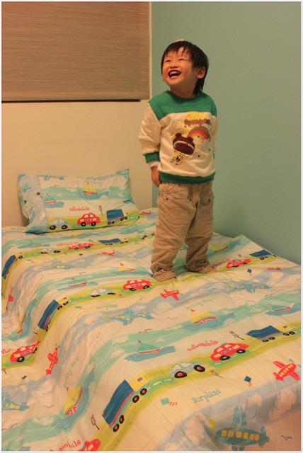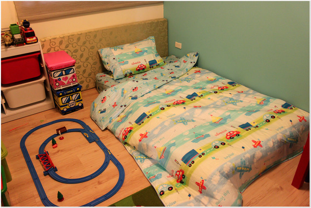 房間的床組還是挑了有交通工具的圖案,提高他自己睡覺的誘因,愛上這裡,才會喜歡睡在這屬於自己的空間^^