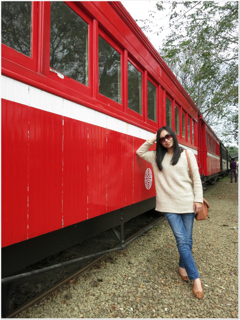 復古的紅色車廂很適合拍照,有了陽光的大力相助,照片看起來特別好看,效果真不賴^^