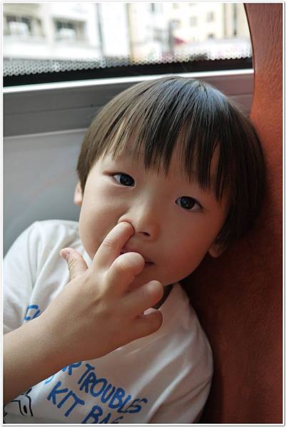 到火車站也需要一段時間,小威不是看窗外風景就是玩車車,偶爾再挖個鼻孔,不衛生><