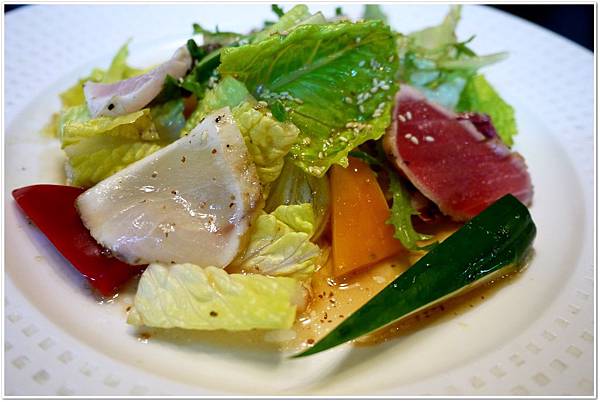 第一道是炙燒生魚片沙拉,清爽的口感,酸甜醬汁更開胃^^