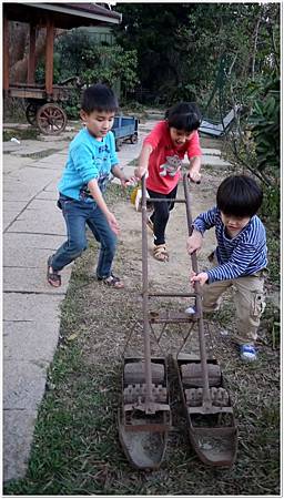 餐廳的戶外陳設許多農具,提供遊客參觀,小人也算是大開眼界,尤其是對於生活在城市的娃兒......