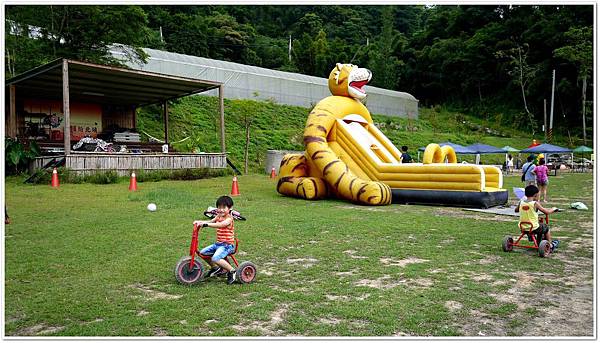 騎三輪車、玩充氣溜滑梯和踢足球,來來回回好幾趟,他不累,我看了都覺得好累....