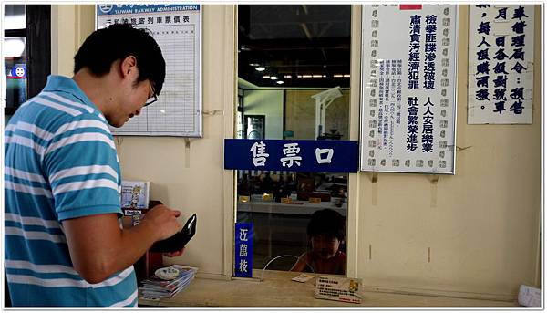 把拔假裝是遊客買火車票,小威也很認真賣票喔!!