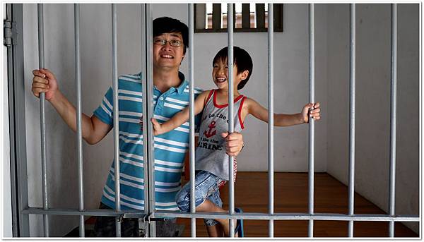 看到陰涼的牢房,小威還有點懼怕,不太敢一個人待在裡面,可能怕我們把他關起來吧(想太多......)